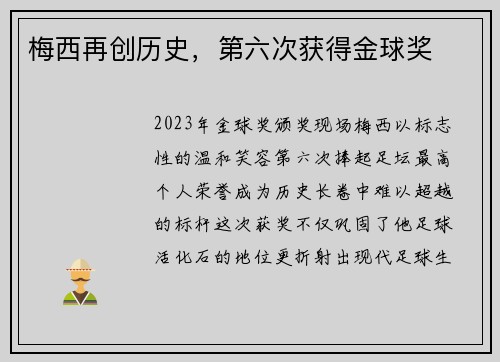 梅西策马奔腾引无限风采,他在足球场上展现出的超凡技术和无与伦比的领导力令人震撼。本文将从梅西的技术特点、领袖气质、职业生涯成就和对团队的影响四个方面对其进行详细阐述。 1、技术特点 梅西具有出色的盘带和突破能力,擅长突破防守线,创造得分机会。他的射术精准,传球娴熟,善于为队友创造机会,是一名真正的团队球员。此外,梅西的速度和灵活性让他在场上游刃有余,难以被防守球员把住。 在比赛中,梅西总是能够凭...